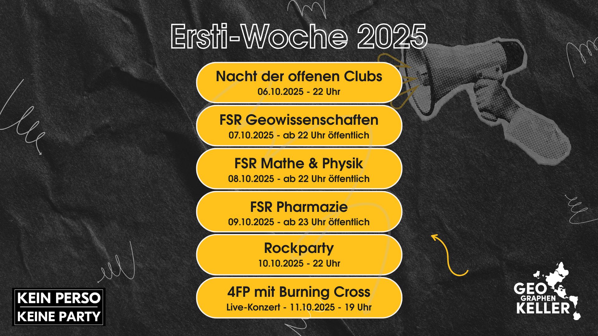 Der FSR Geowissenschaften feiert bei uns den Start ins Semester. Ab 22 Uhr sind alle Studierenden willkommen.